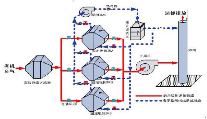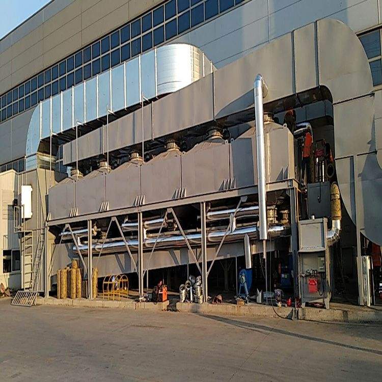 設(shè)備原理: 在催化劑的作用下,有機(jī)廢氣在較低的起燃溫度下(250~400℃),發(fā)生無焰燃燒,碳?xì)浠衔锉谎趸纸鉃?/span>CO2和H2O,同時(shí)放出大量熱能,從而達(dá)到去除廢氣中的有機(jī)物的目的,該方法是凈化有機(jī)廢氣、消除惡臭的有效手段之一。 含VOCs的廢氣經(jīng)風(fēng)機(jī)導(dǎo)入換熱器,經(jīng)由換熱器加熱后,再通過催化燃燒器,這時(shí)廢氣已被加熱至催化分解溫度,通過催化劑床,催化分解會(huì)釋放熱能,而VOCs被分解為二氧化碳及水。經(jīng)凈化后氣體溫度升高,再次進(jìn)入換熱器與未經(jīng)處理的VOC廢氣進(jìn)行熱交換,以此減少能源的消耗。后,凈化后的氣體從煙囪達(dá)標(biāo)排放到大氣中。 催化劑:優(yōu)選貴金屬催化劑(Pt、Pd和Au),具有起燃溫度低(280℃起燃),去除效率高(>95%),具有較高催化活性,同時(shí)還耐高溫、抗氧化、耐腐蝕。催化劑改變化學(xué)反應(yīng)速度而本身又不參與反應(yīng),反應(yīng)前后基本沒有消耗,使用壽命長。 廢氣預(yù)處理:為了避免催化劑床層的堵塞和催化劑中毒,廢氣在進(jìn)入床層之前必須進(jìn)行預(yù)處理,以除去廢氣中的粉塵、液滴及催化劑的毒物。 預(yù)熱裝置:催化劑都有一個(gè)適宜的催化活性溫度,對催化燃燒來說稱為催化劑起燃溫度,必須使廢氣和床層的溫度達(dá)到起燃溫度才能進(jìn)行催化燃燒。對于排出的廢氣本身溫度就較高的場合,如漆包線、絕緣材料、烤漆等烘干排氣,溫度可達(dá)300℃以上,則不必設(shè)置預(yù)熱裝置。